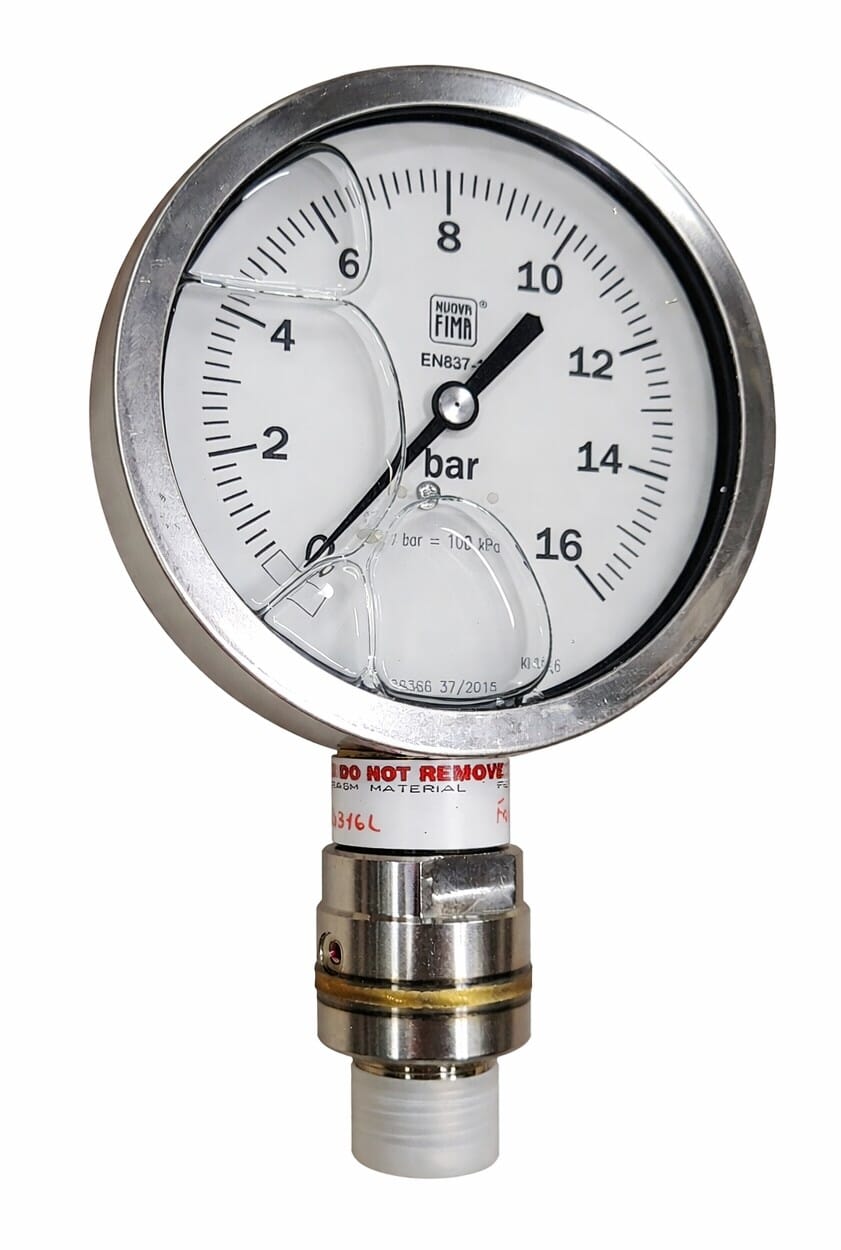Manometer minimembran Ø100. 0-4 Bar. 1/2