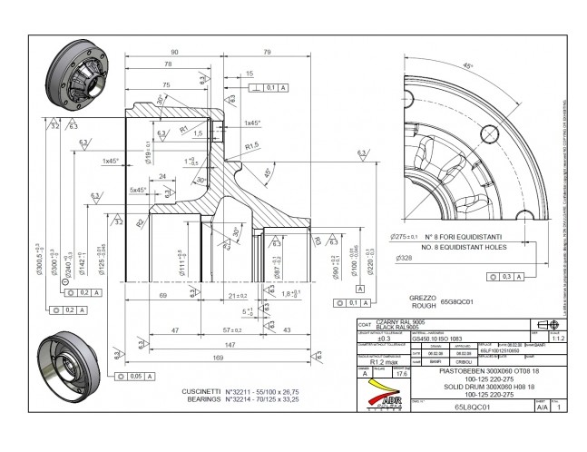 Bremsetrommel og nav 300x60.100x125. C=169. M18