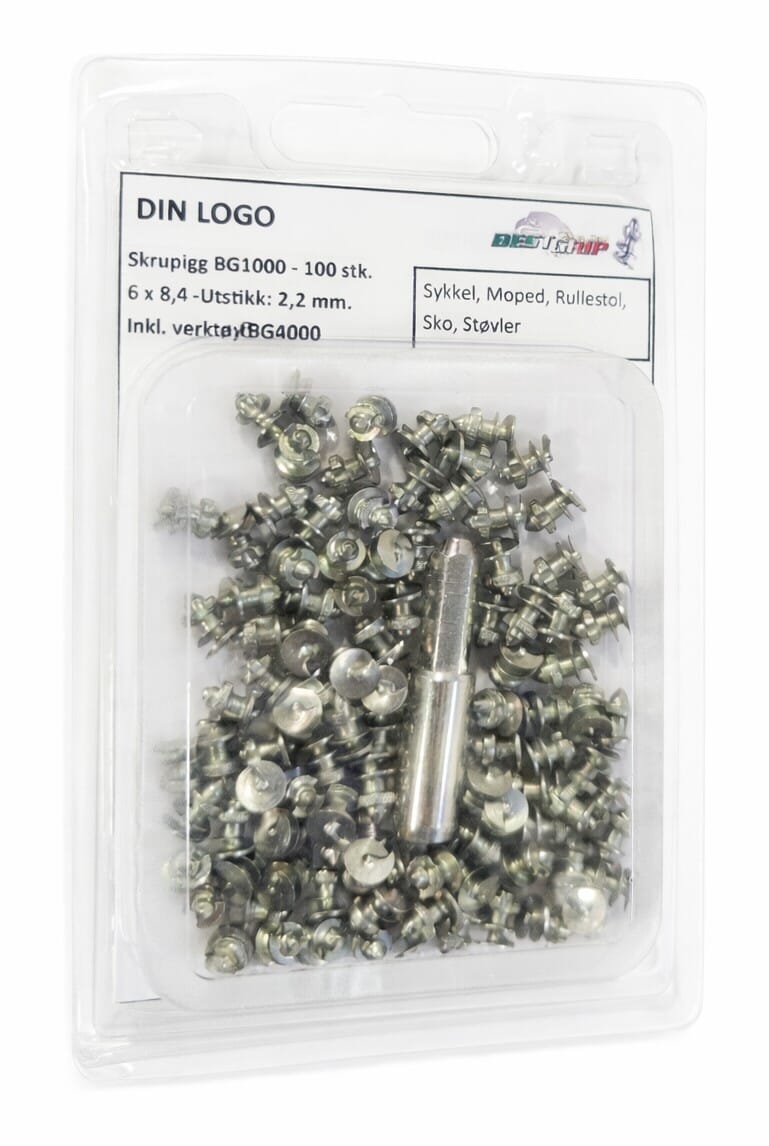 100 stk. pigger inkl. verktøy, pakket i blister.