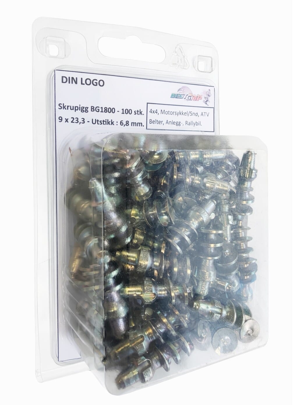100 stk. pigger, pakket i blister. Verktøy bestilles separat (BG4800).
