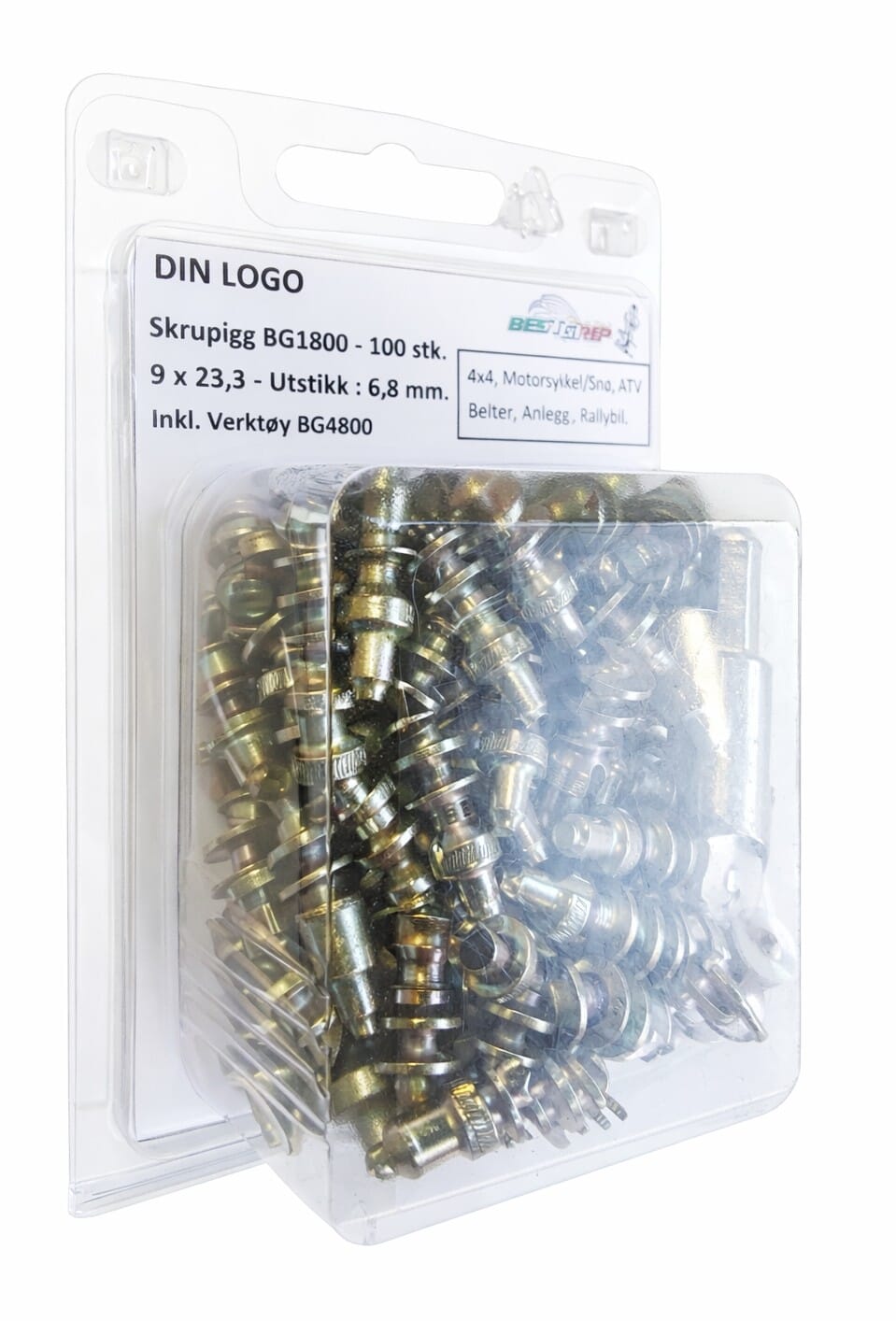 100 stk. pigger, pakket i blister. Inkl. verktøy (BG4800).