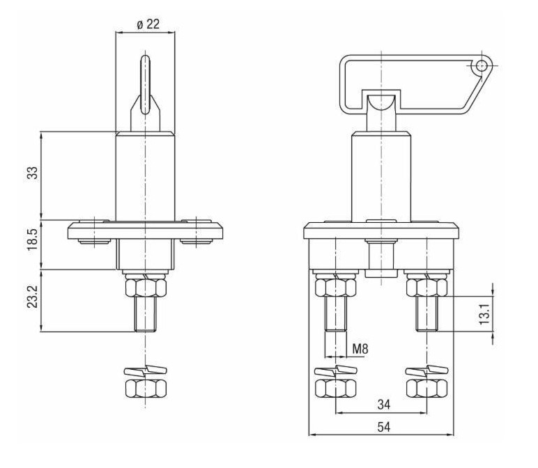 Nøkkel til hovedstrømsbryter. (AM09862)